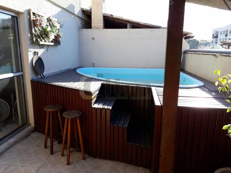 • Excelente cobertura duplex , 136M², No Pechincha , 136M², área edificada, com a seguinte estrutura: Primeiro pavimento: Sala em dois ambientes, piso em porcelanato , varanda com sol da manhã , 3 quartos sendo 1 suíte , circulação, banheiro social com blindex, cozinha com armários planejados, área de serviço . Segundo pavimento: Sala ampla, circulação, banheiro social com blindex , área coberta e área livre com piscina em deck e churrasqueira . Escada de ferro . Condomínio com piscina ,sauna, churrasqueira, espaço gourmet, academia, play, salão de festas. Localização privilegiada, com fácil acesso à Linha Amarela . Condomínio Spazio Realy. - Atual. 07-04-2026 20:00:35